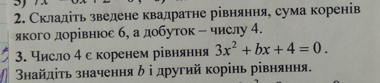 2. x² + px + q = 0. За т. Вієта маємо: p = -(x₁ + x₂) = -6; q = x₁ · x₂ = 4.