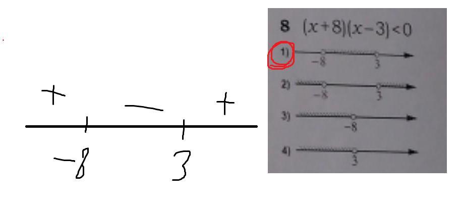 тащемта рисуем координатную прямую и подставляем значения между корнями. так получаем + или -. нам нужен минус