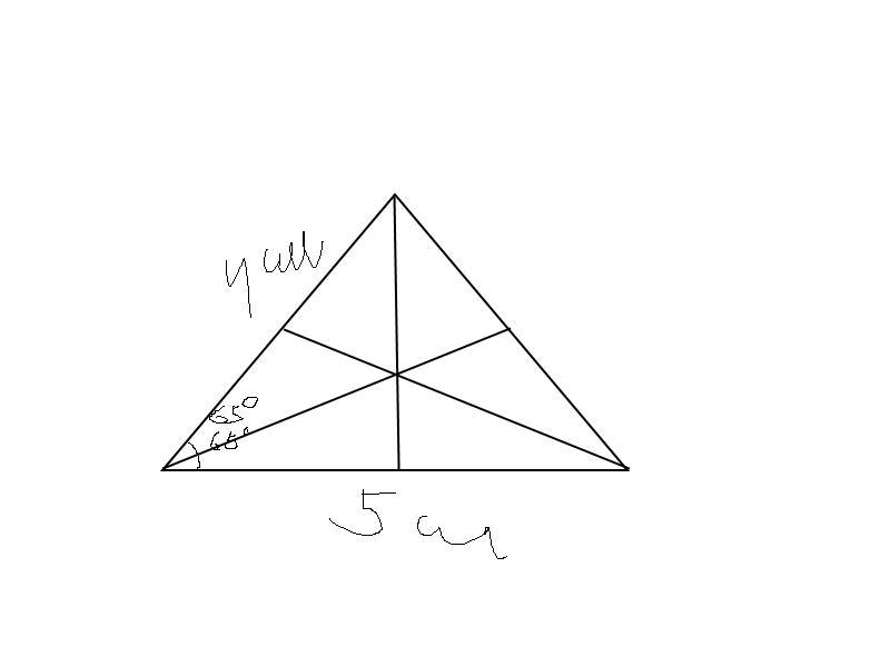 построить треугольник по двум сторонам равных 4,5 см и углу между ними который равняется 65 градусов построить медианы