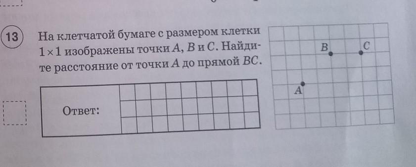 Расстояние - это перпендикуляр из точки А к прямой АВ. На рисунке надо дочертить отрезок влево, а потом из точки А провести линию вверх. И получится, что расстояние равно двум.