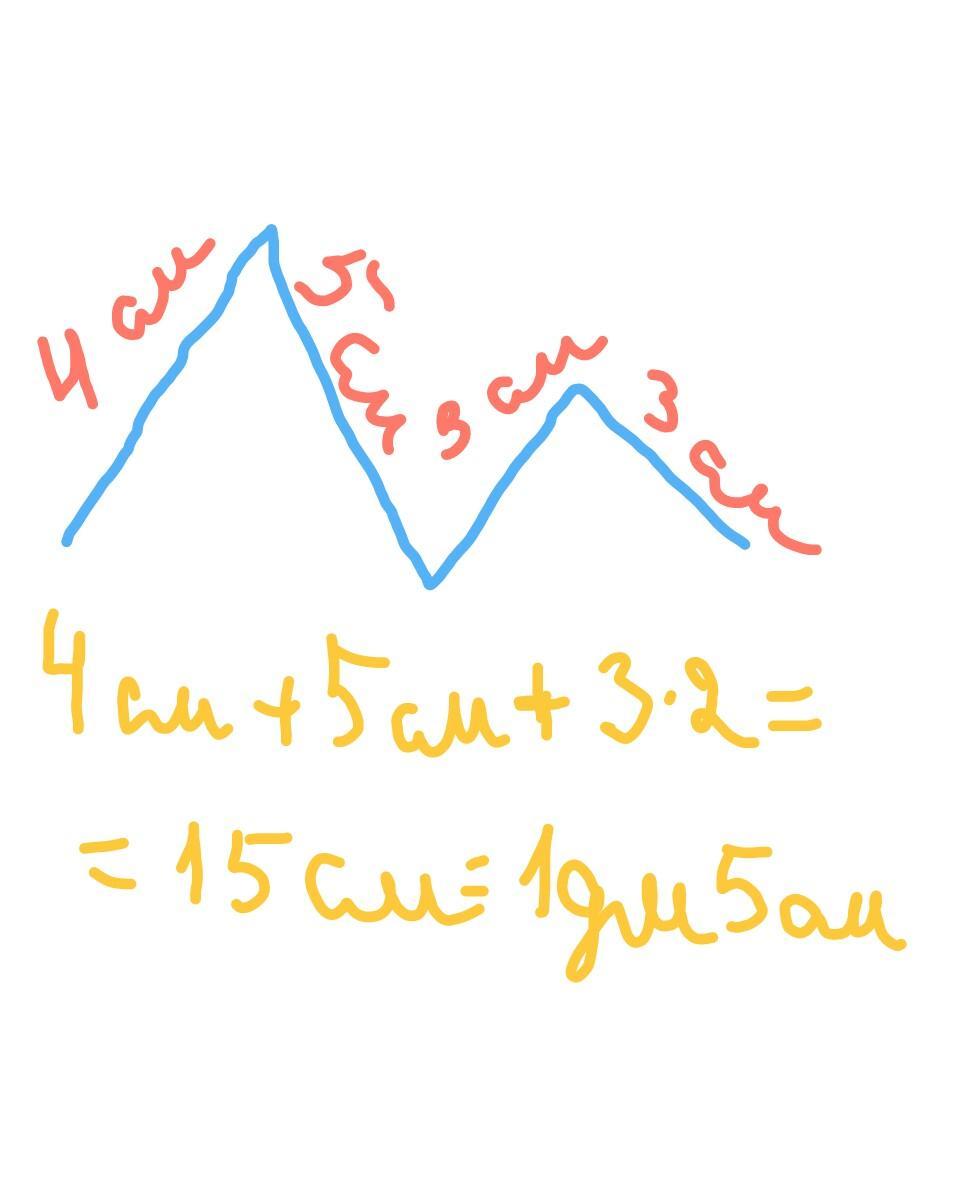 Начертил с помощью карандаша и линейки ломаную линию длина которой находится выражением 4 см+5 см+ 3 см • 2 = 1 дм 5 см