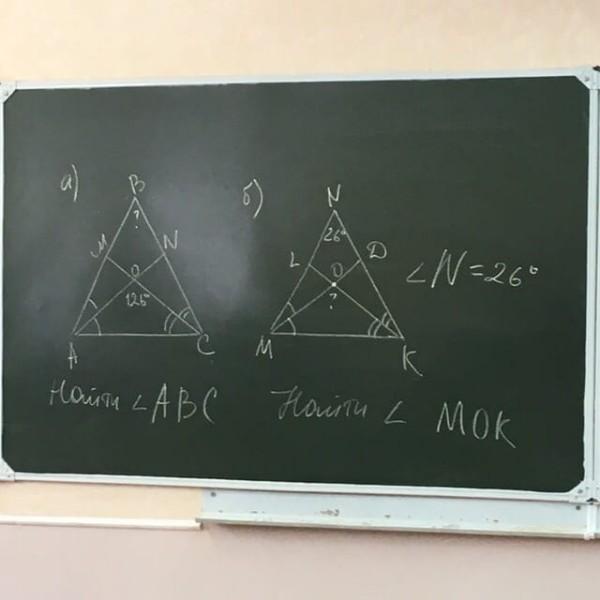 б) ПУсть в ΔМКN ∠М=2х, ∠К=2у, тогда 2*(х+у)=180°-26°=154°;