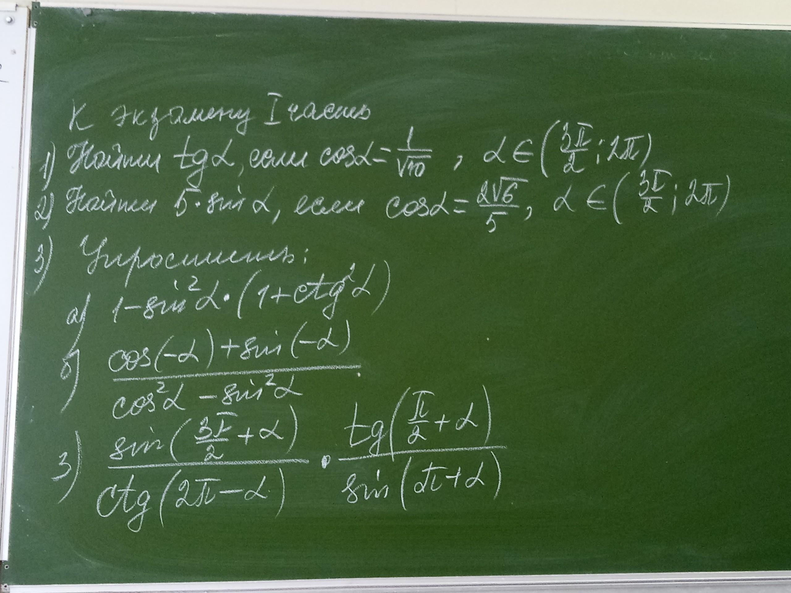 1) cosα=1/√10 α∈(3π/2;2π) (4-я четверть) tgα=?