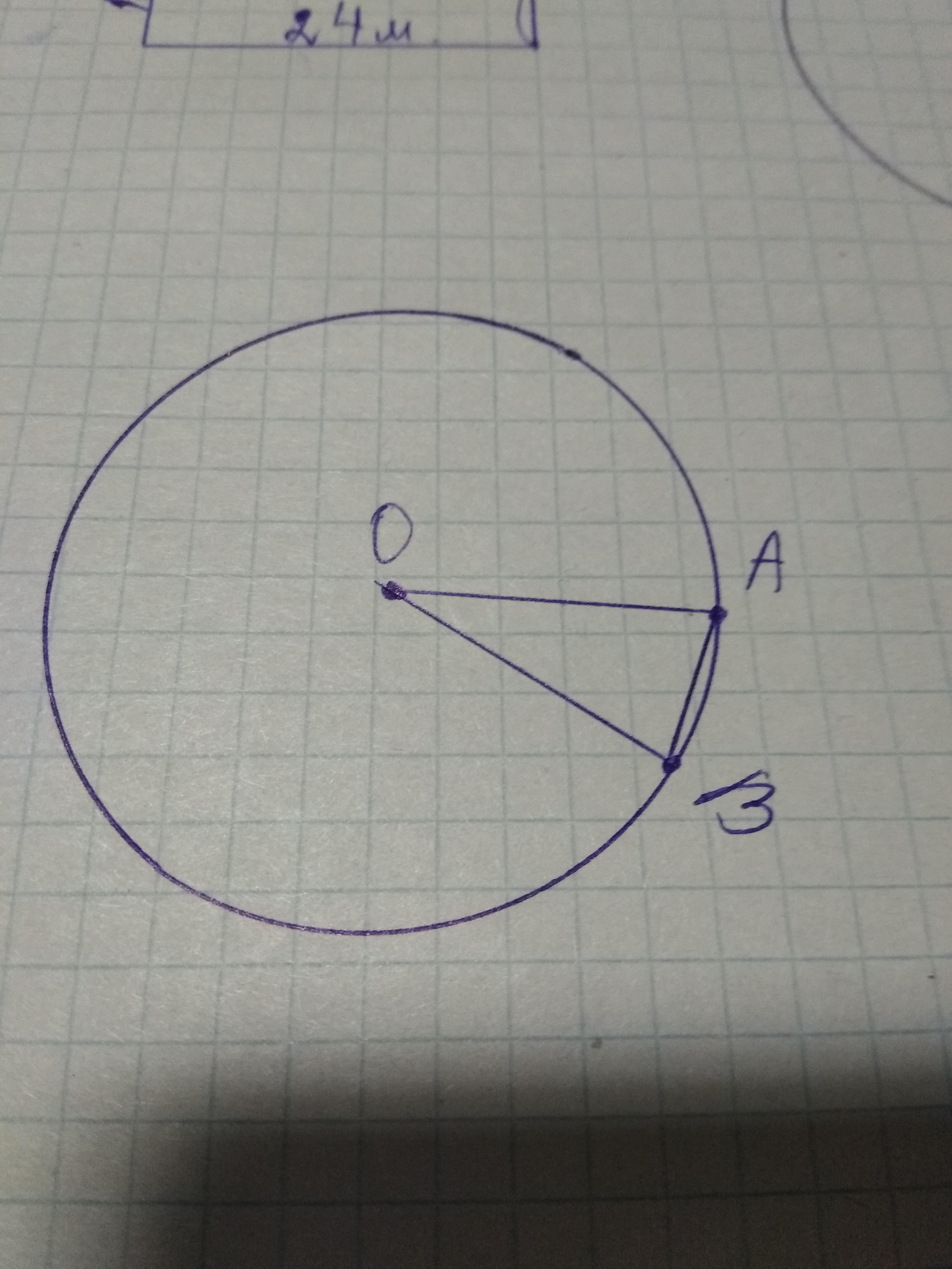 Начертите окружность с центром О, и отметьте на ней точку А. Постройте хорду АВ так, чтобы угол АОВ=30 градусов