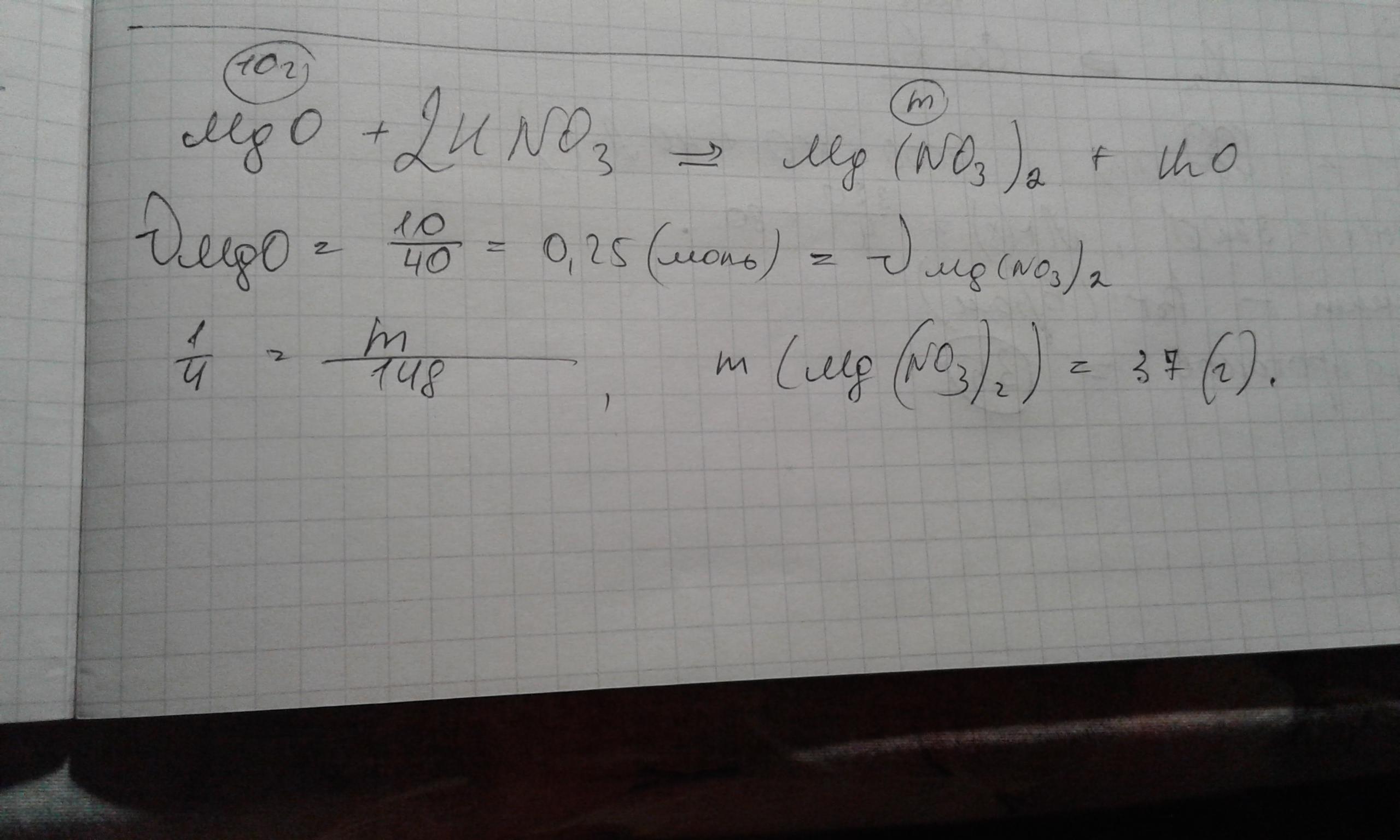 СРОЧНОООООООООО!!!!!!!!!!!!! Определите массу нитрата магния, который образуется при взаимодействии 10 г. оксида магния с 48 г. раствора азотной кислоты.
