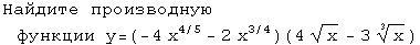 [tex]y=(-x^4^/^5-2x^3^/^4)(4sqrt{x} -3sqrt[3]{x})\
