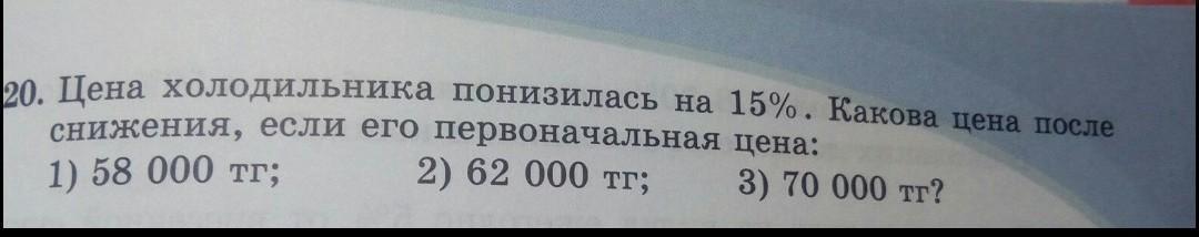 1) 58000 * 0,85 = 49300 тг