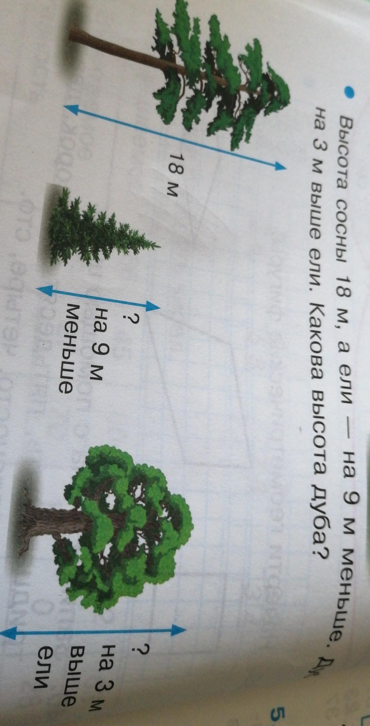 1)18-9=9(высота ели). 2)9+3=12м.(высота дуба)