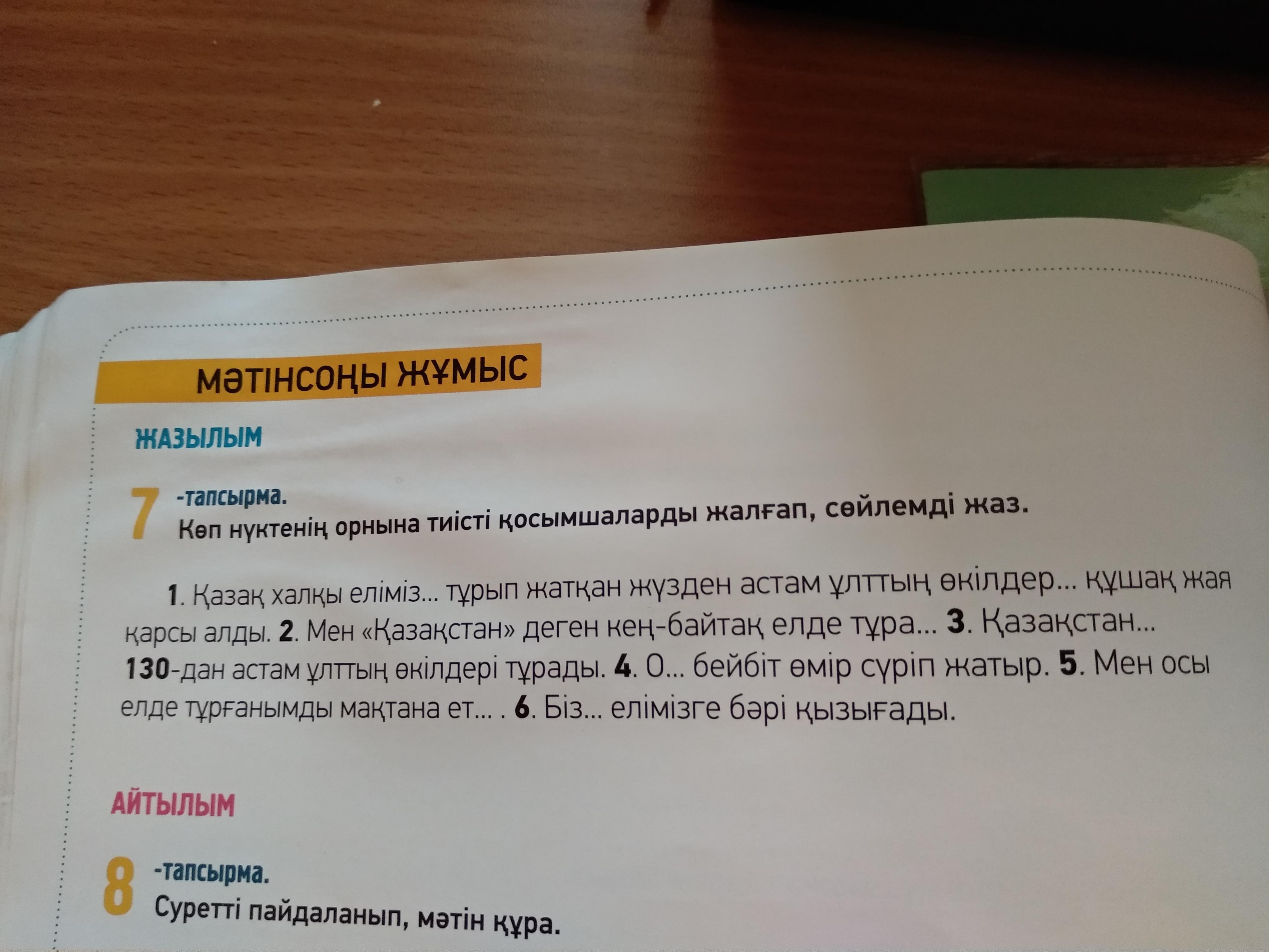 Слова где много точек:елімізде,өкілдерін,тұрамын,қазақстанда,олар,еттім,біздің