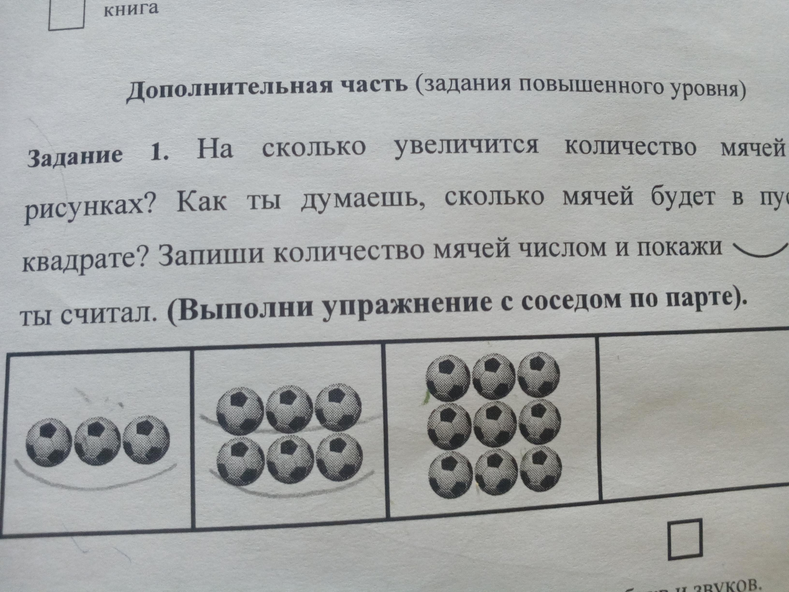Пошаговое объяснение:если порассуждать логически то во всех квадратах кол-во мячей увеличивается в 3 раза(т.е каждый раз +3)