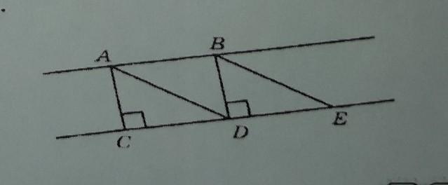 На рисунке прямые AB и CD параллельны, AC и BD - перпендикуляры к прямой CD. Укажите верные утверждения:
