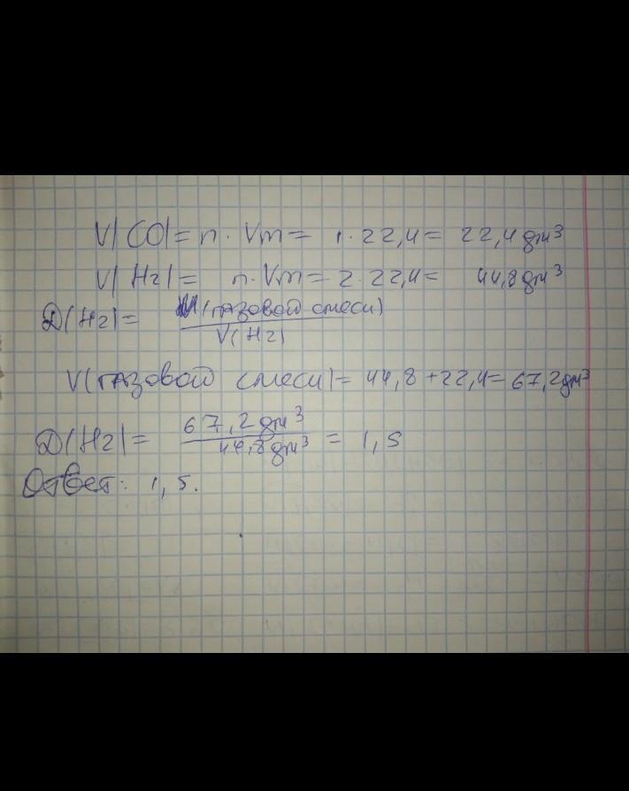 Вычислить плотность по водороду газовой смеси, содержащей 1 моль угарного газа и 2 моля водорода.