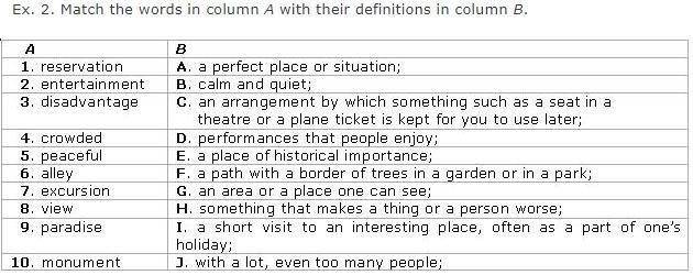 7I: Excursion - a short visit to an interesting place, often as a part of one's holiday;