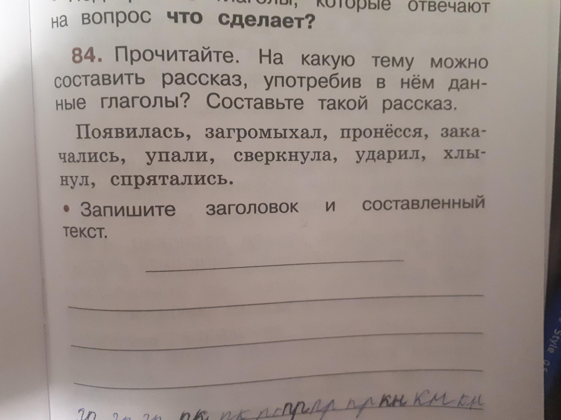 Вдруг на небе появилась туча и хлынул дождь. загромыхал ветер, закачались деревья. И на небе сверкнула молния. Все звери лесные спрятались в своих жилищах. Недалеко пронёсся ураган,упали деревья и всё что было захвачено им.