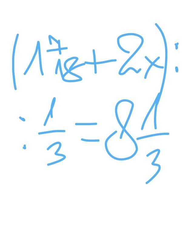 25/18+2x×3/1=25/3. 25/8(умножим на х)+3/2x(умножим на 9)=25/3(умножим на 6х) 25x+27/18x=150x/18x. 25x+27-150x/18x=0. -125x+27/18x=0. -125x+27=0. -125x=-27. x=-27/-125. x=0.216