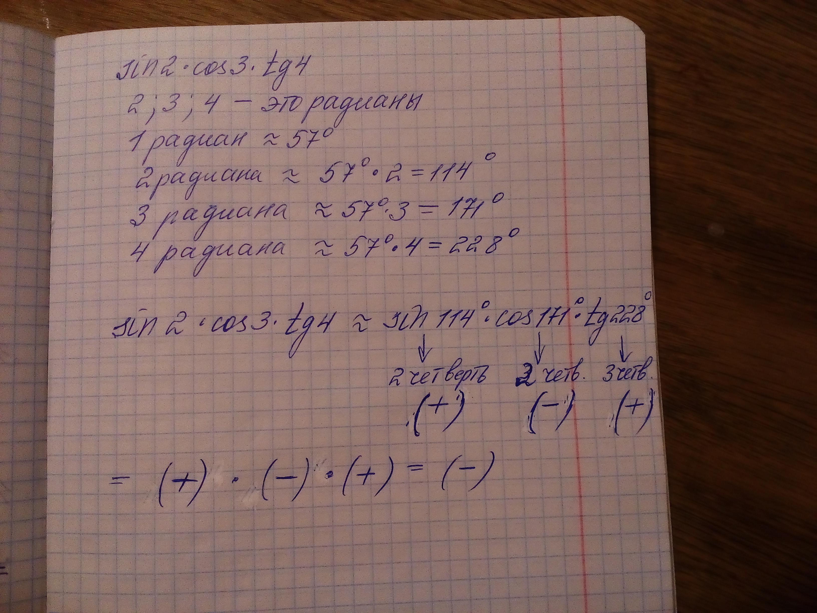 50 баллов.Определить знак значения числового выражения sin2cos3tg4. С объяснениями, что, почему, откуда