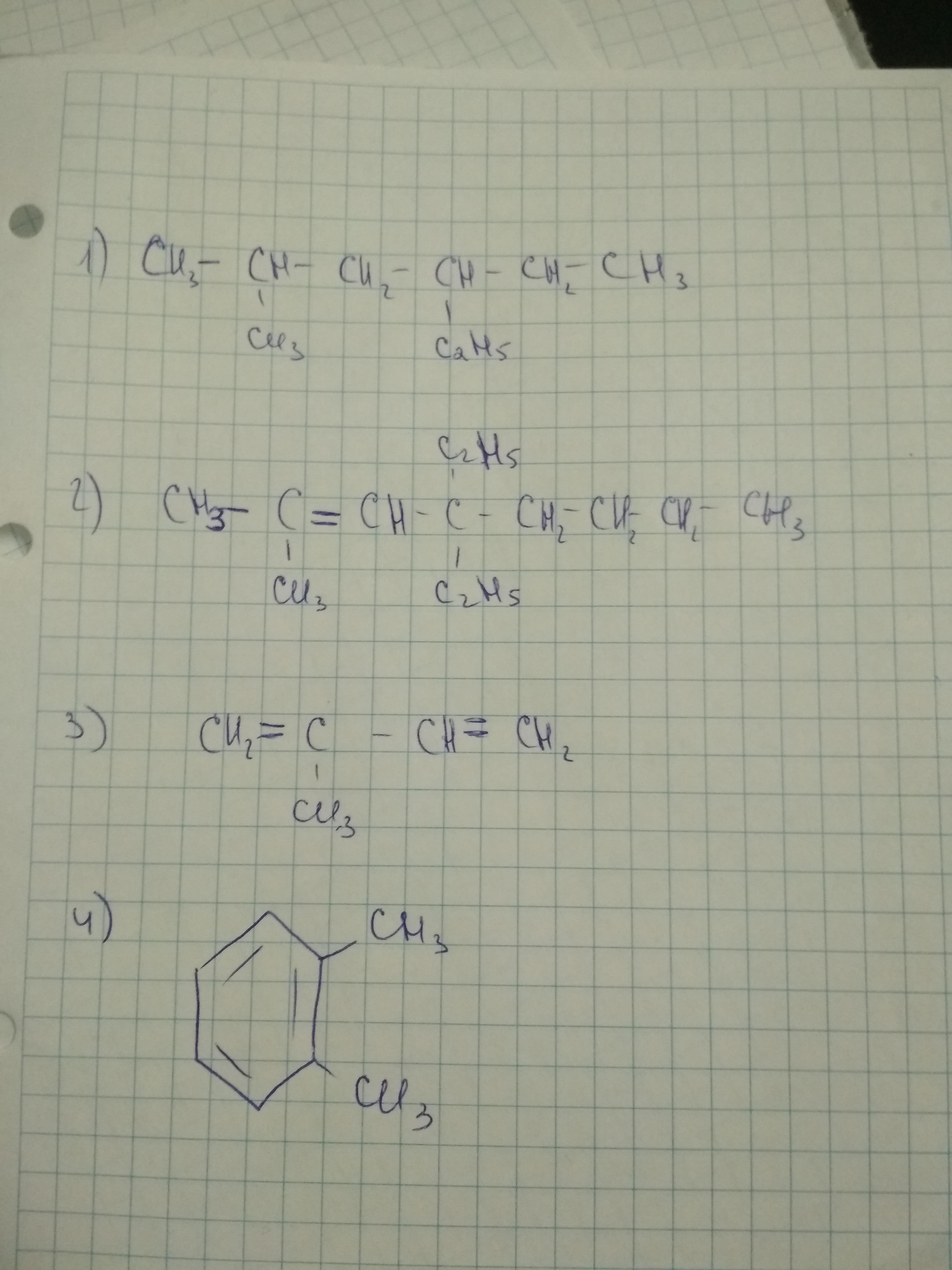 4-этил2-метилгексан;4,4диэтил-2метилокт-1-ен;2-метилбута-1,3диен;1,2диметилбензол