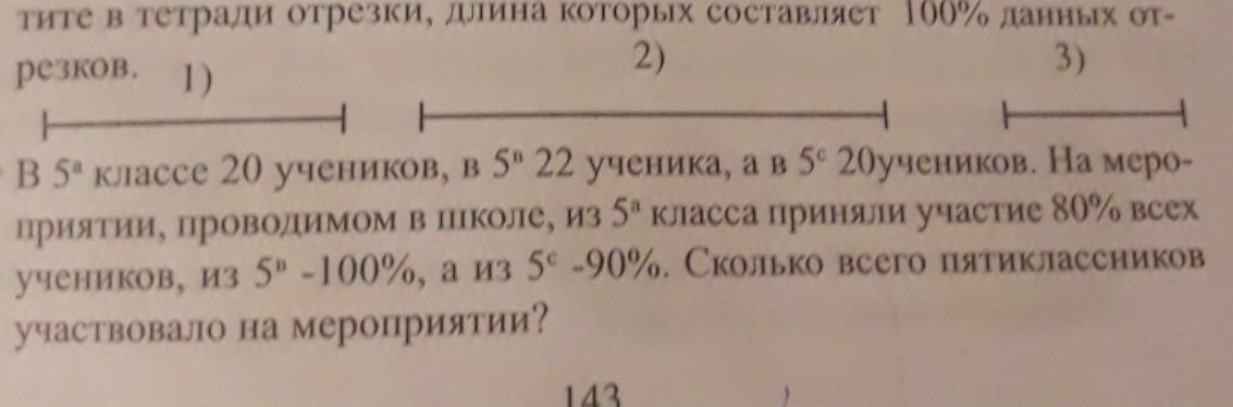 классе 5 А 20 учеников в 5 Б 22 ученика 5c 20 учеников на мероприятия проводимым в школе из 5a класса приняли участие 80% всех учеников из 5B 100% и 5C 90% Сколько всего 5 классников участвовал на мероприятие .Пд помогите срочно