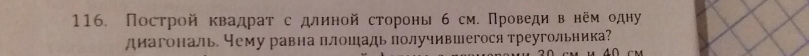 площадь треугольника =половине площади квадрата = 36/2=18 cм²
