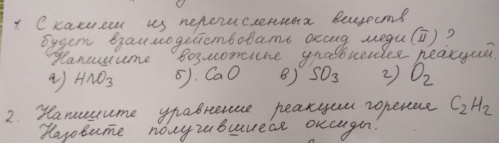 Оксид меди 2 это основной оксид, поэтому вступит в реакцию с веществом с противоположными свойствами, т.е. с кислотой