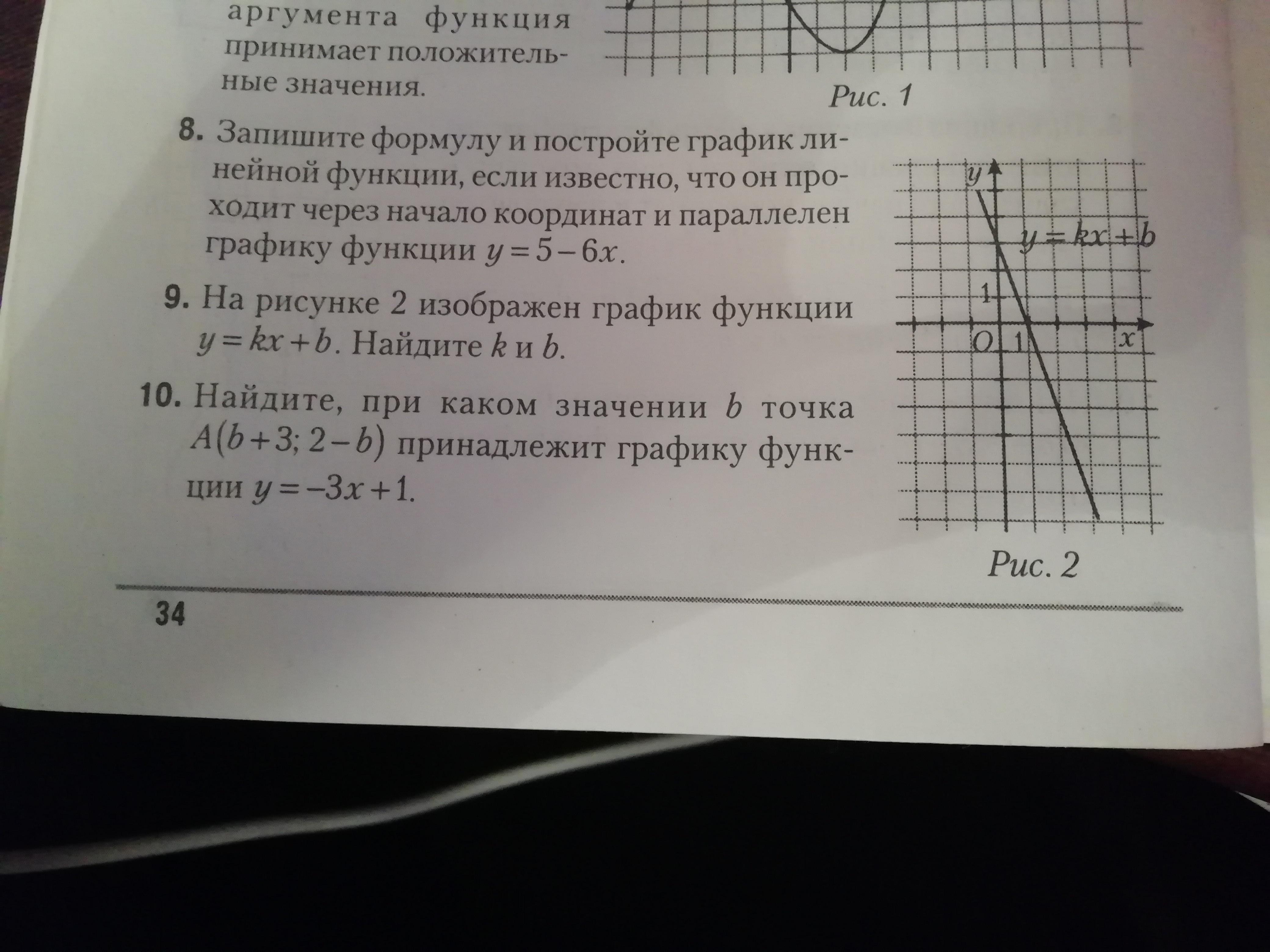 9)у=кх+в, замечаем , что график проходит через точки (0;3) и (1;0), подставляем в это уравнение, 3=к*0+в, в=3, 0=к*1+3, к=-3, подставим в и к в ур-е прямой, у=-3х+3