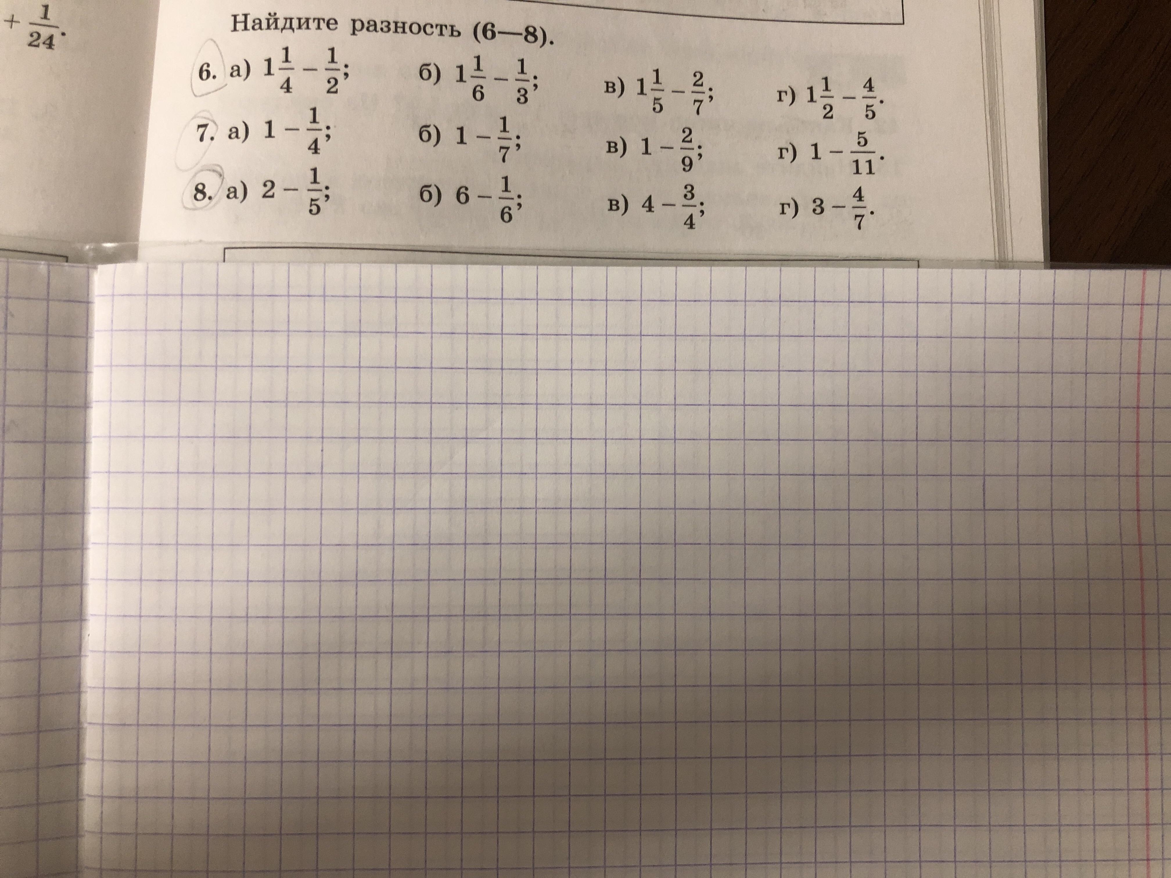 6)1 1/4 - 1/2= 5/4 - 2/4=3/4
