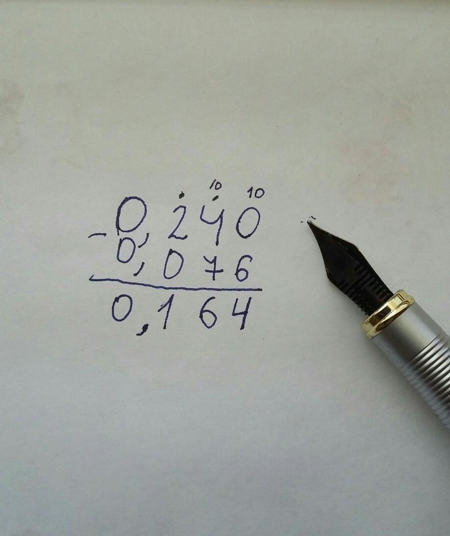 просто надо приписать ноль в конце 0,24 и отнять 0,076 (уровнять число цифр)