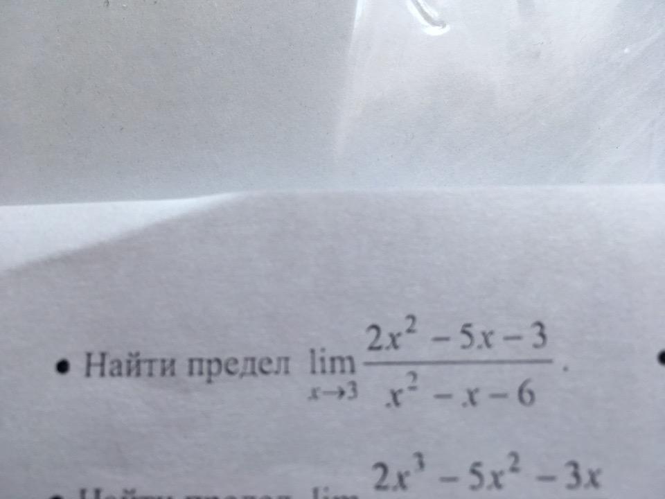 Потом найдем корни знаменателя, это 3 и -2, разложение будет (х-3)*(х+2 ) . Сократим общую скобку (х+3 ) и в оставшееся выражение подставим предел (х=3 ). Получим, что предел будет равен 2 *( 3+0,5 )/ ( 3+2)= 7/5 это ответ