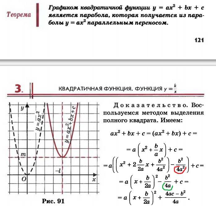 Доказательство теоремы квадратичной функции. Куда делся квадрат коэффициента а, указанного в формуле? Красный - был квадрат, после раскрытия скобок - зеленый - нет квадрата