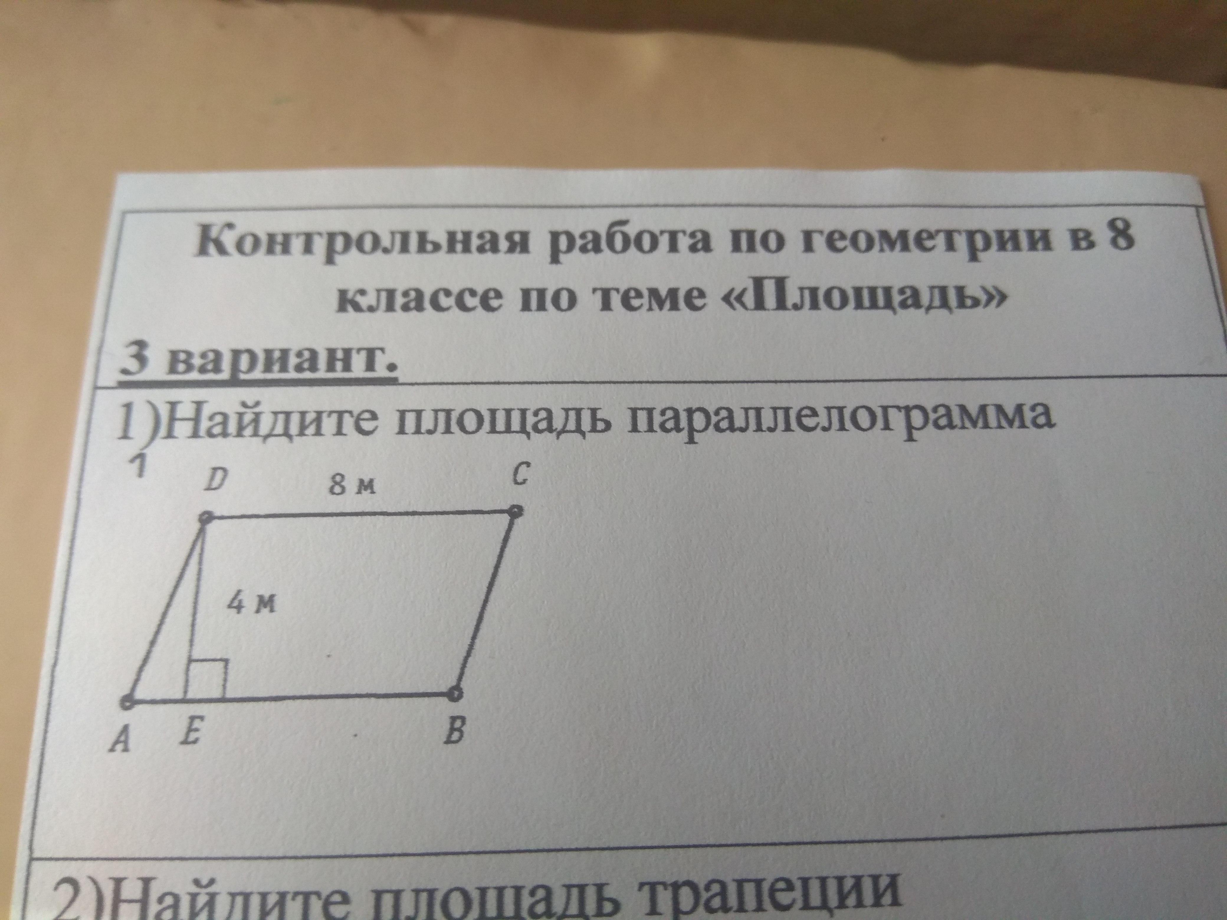 площадь ищем так АВ*ДЕ=8*4=32/м²/