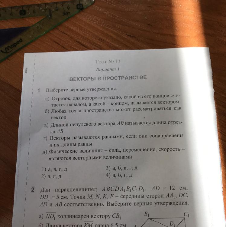 а) верно б) верно (это нулевой вектор) в) верно) г) верно д) верно