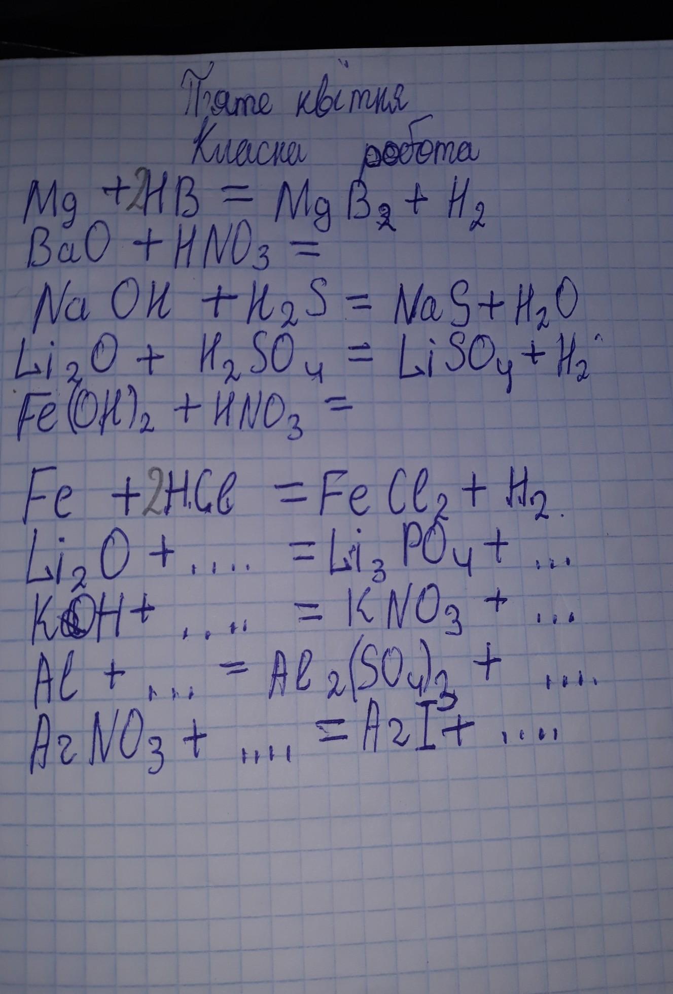 Fe + 2 HCL = FeCl₂ + H₂