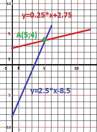 А вот точку пересечения находим на глаз (или решая алгебраически)