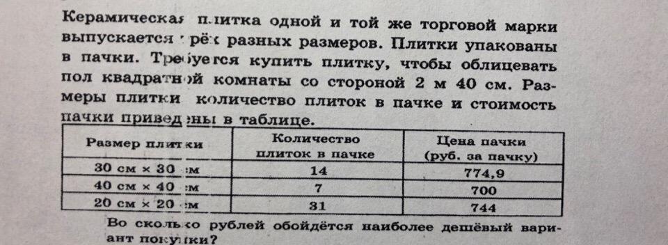 Наиболее дешевый вариант 3, плитка 20х20 по 744 р.