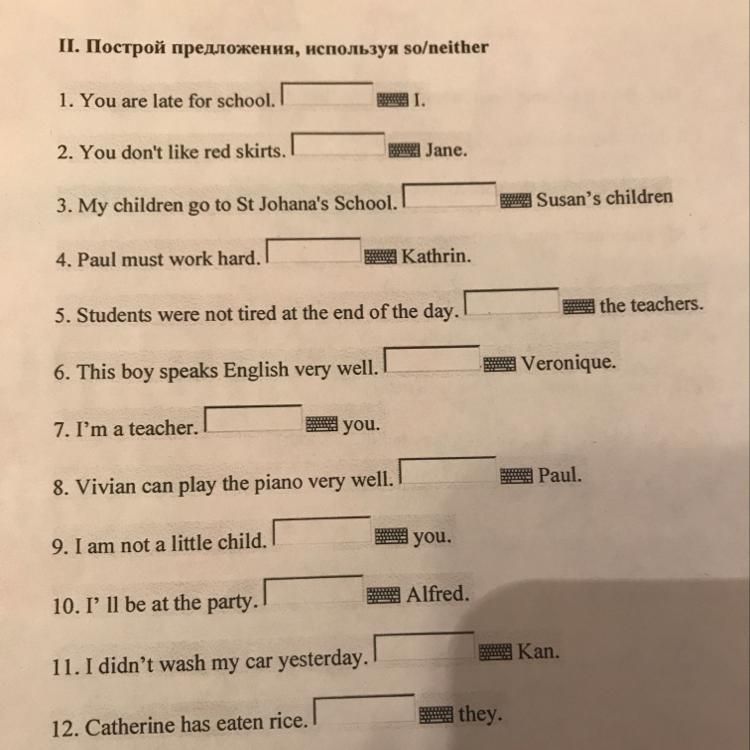 7)I am teacher.Neither do you.8)Vivian can play piano very well.So will Paul.