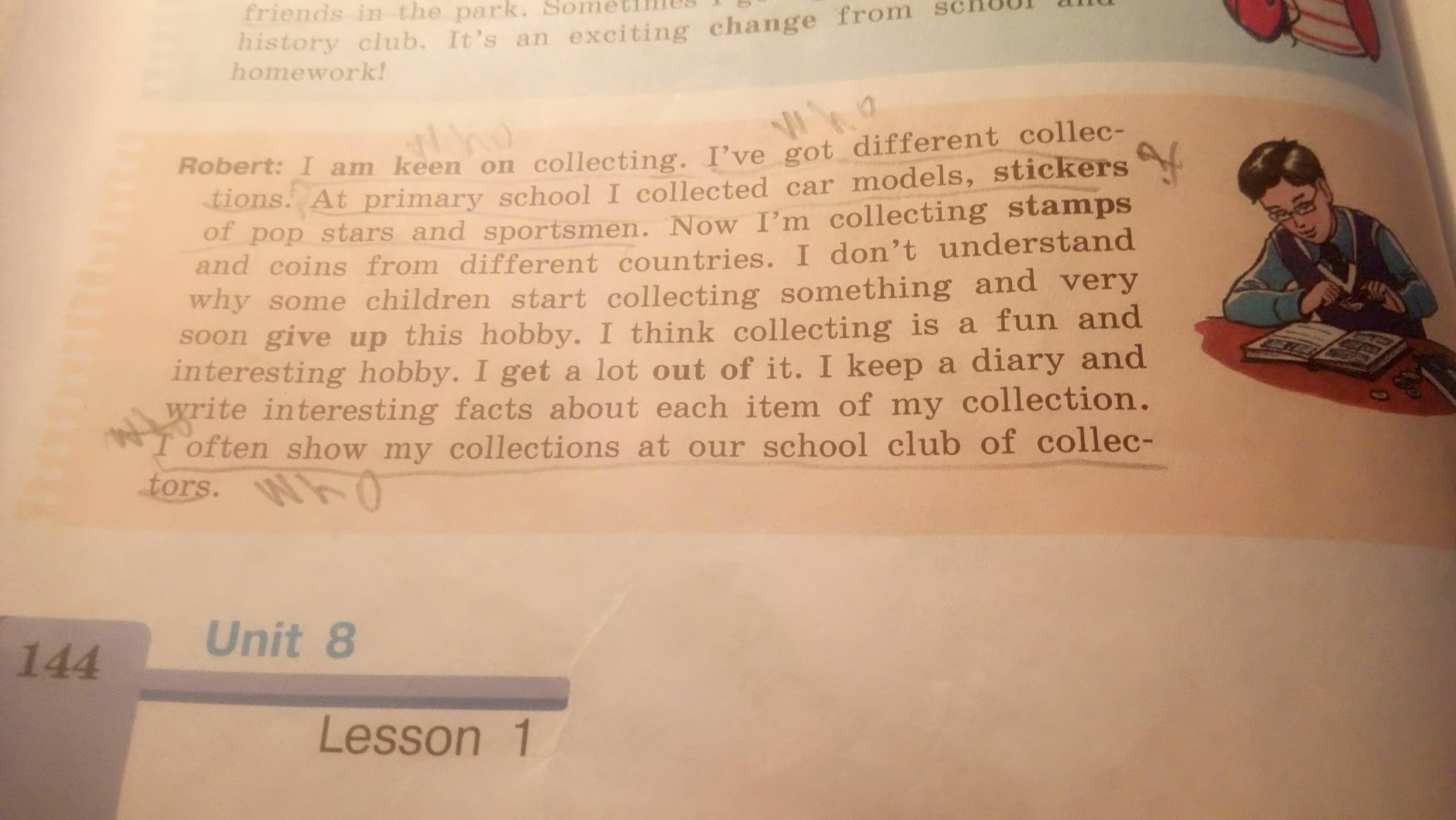 5. What did Robert collect at primary school? - специальный вопрос.