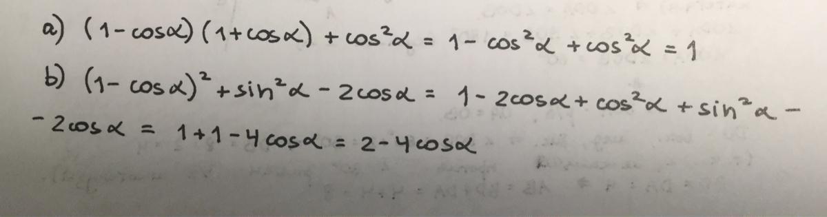 б) (1- cos a)^2 + sin^2 a - 2cos a