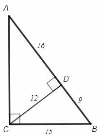 CD - высота из прямого угла, равна среднему геометрическому проекций катетов на гипотенузу.