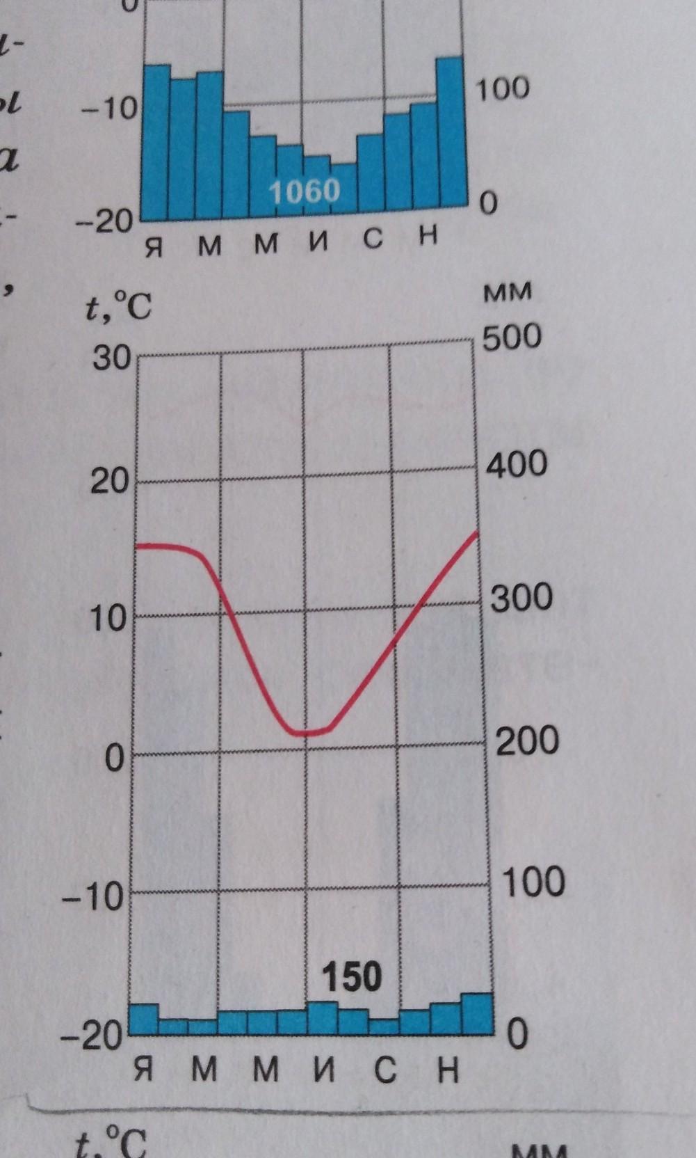 Одинаковое количество осадков и их крайне малое количество говорит о том, что здесь формируется пустыня. На мой взгляд, это где-то на побережье Тихого океана в районе Чили. Там вдоль берега проходит холодное Перуанское течение, поэтому осадков мало.
