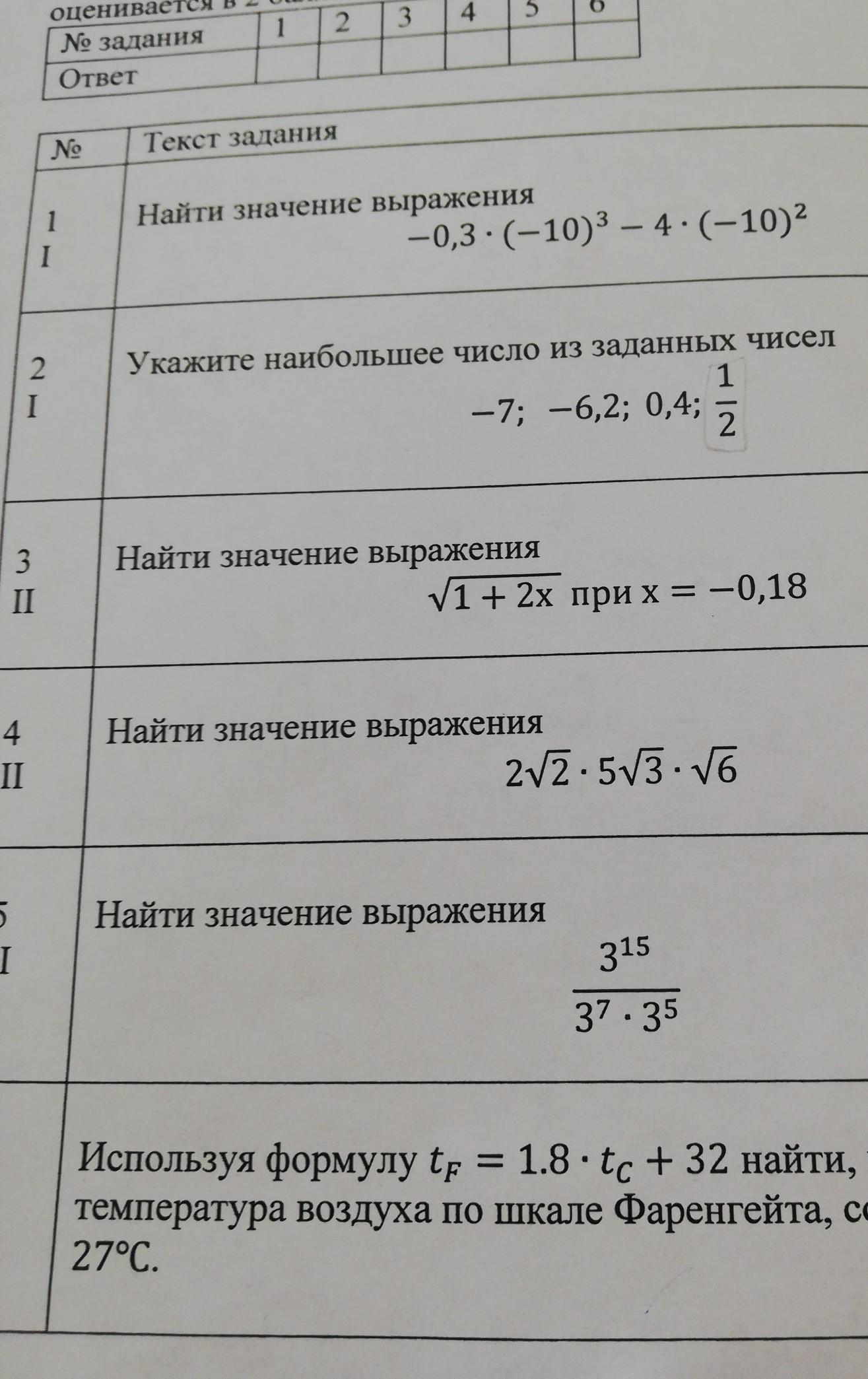 найдите значение выражения - 0.3*(-10)^3-4*(-10)^2
