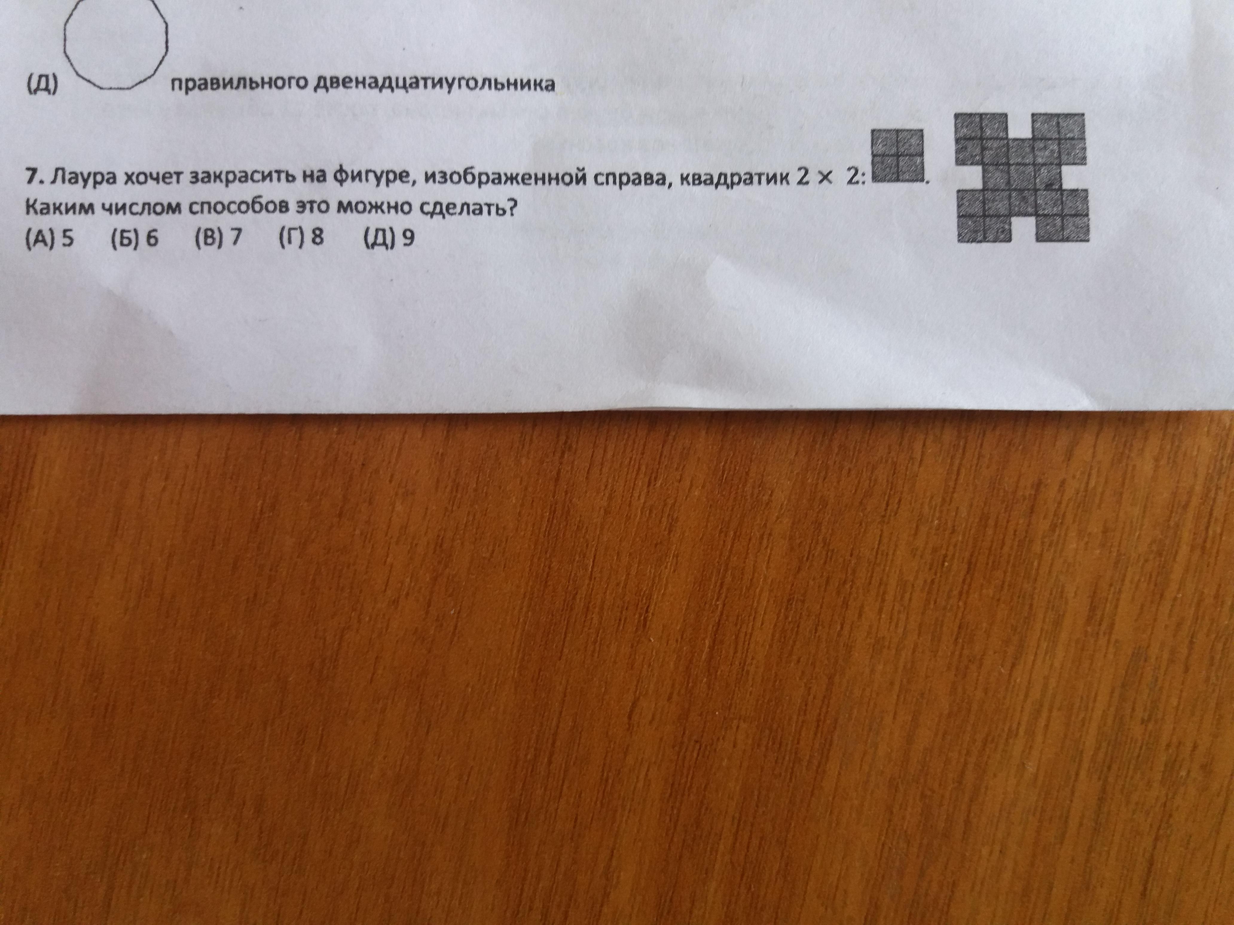 Лаура хочет закрасить на фигуре, изображённой справа, квадратик 2×2. Каким числом способов это можно сделать?
