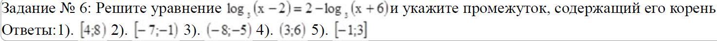 log_3(x-2)=2-log_3(x+6); ; ,; ; ; ODZ:; left { {{x-2>0} atop {x+6>0}}right. ; to x>2\\log_3(x-2)=log_33^2-log_3(x+6)\\log_3(x-2)=log_3(9x+54)\\x-2=9x+54\\8x=56\\x=7>2\\Otvet:; ; x=7in [; 4,8); .