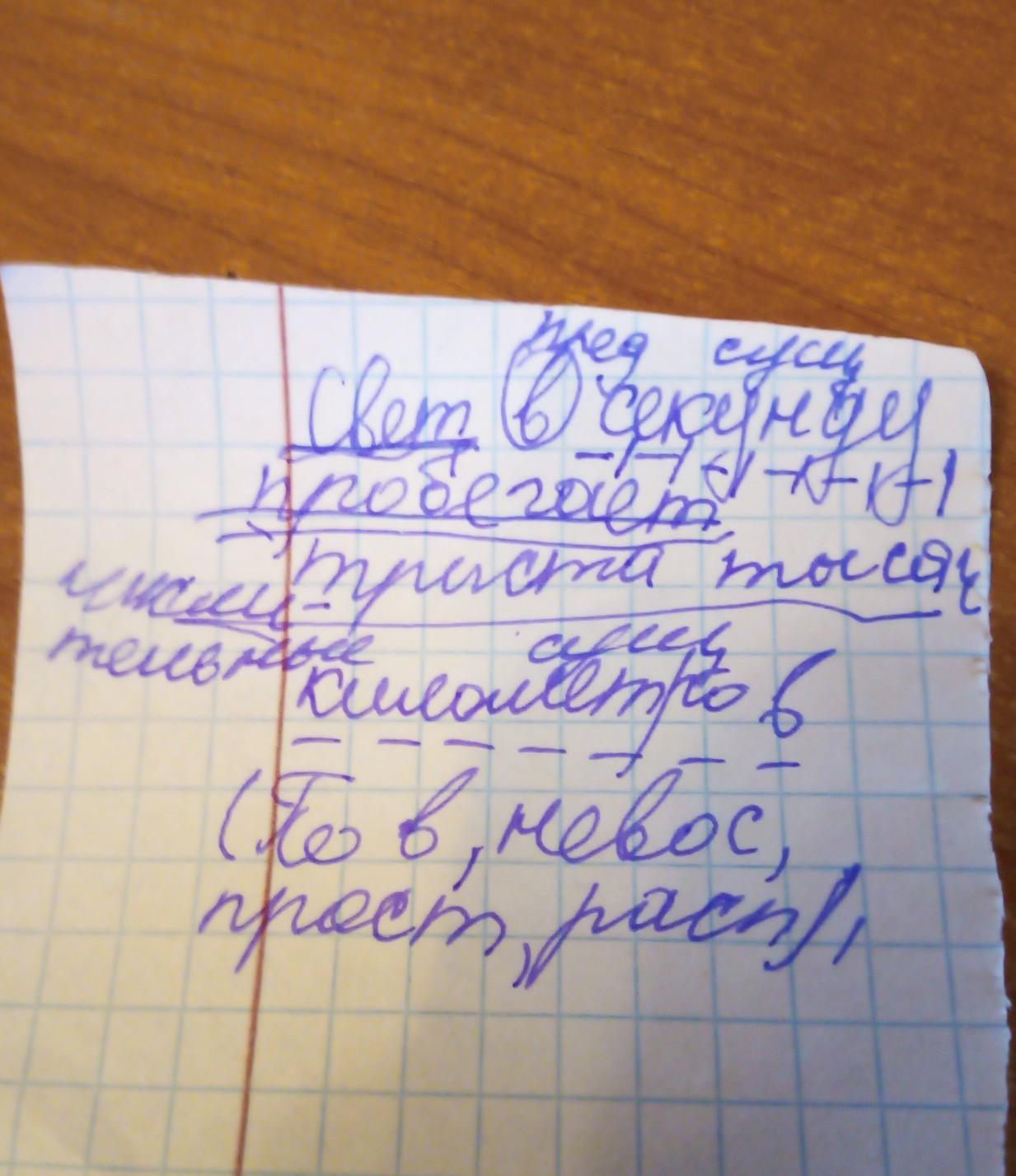 Свет(Сущ. Подлежащие) в (Предлог, обстоятельство) секунду (Сущ. Обстоятельство) пробегает (Гл. Сказуемое) Триста тысяч (Числительное, дополнение) километров (Сущ. Дополнение).