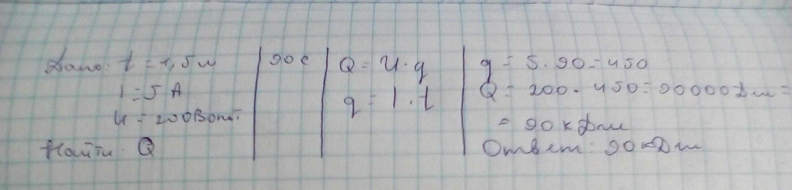Q=200В*90с*5А=90000дж