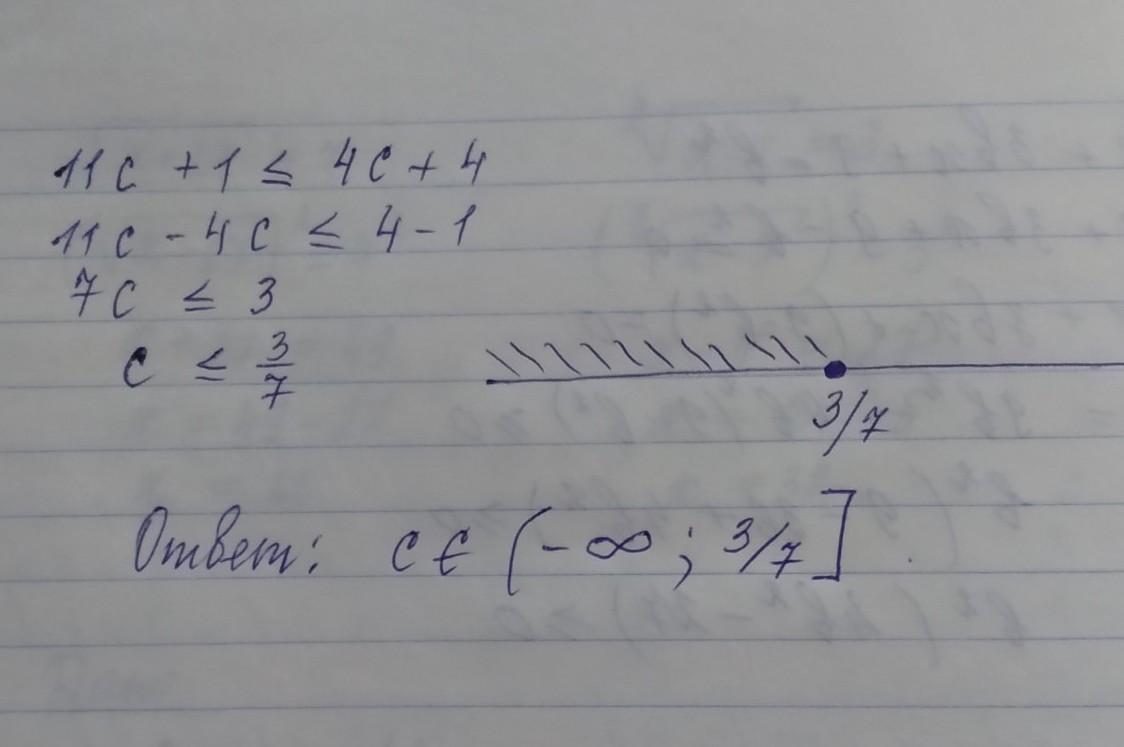 Запиши заданное множество {c|11c+1≤4c+4} в виде числового промежутка.