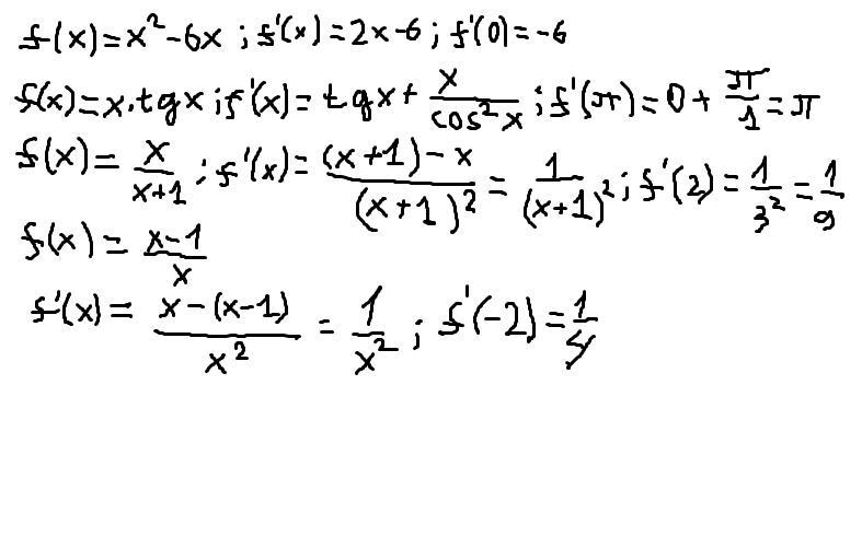 Найдите значение производной функции у=f(x) в заданных точках:
