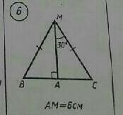 Дано: ΔBMC, BM = MC, AM - высота, ∠AMC = 30°, AM = 6 см.