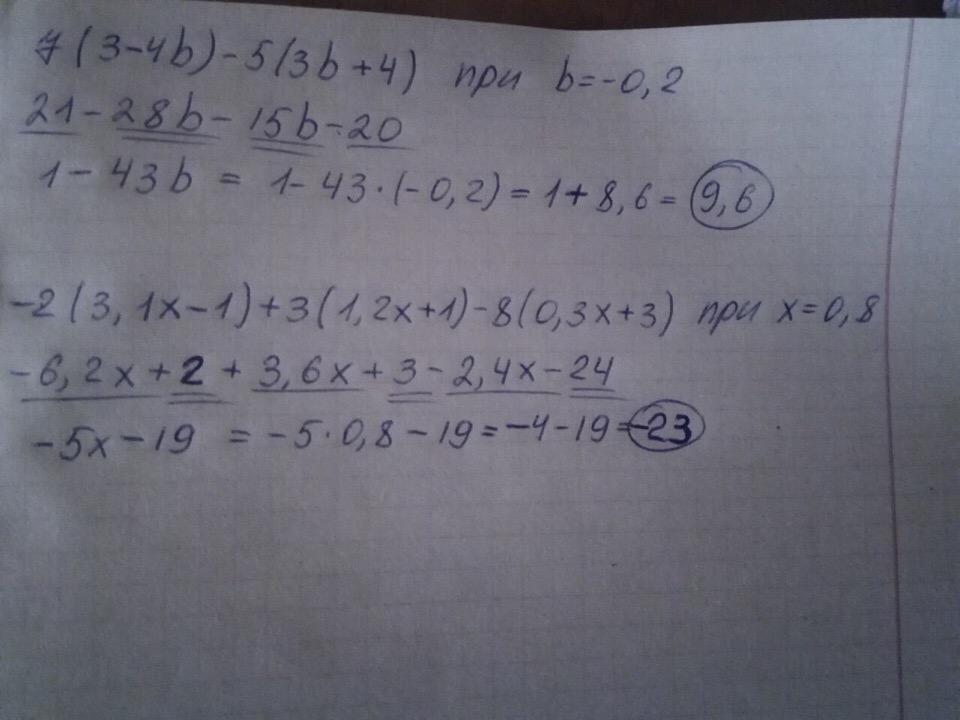 -2(3,1x-1)+3(1,2x+1)-8(0,3x+3) при x=0,8