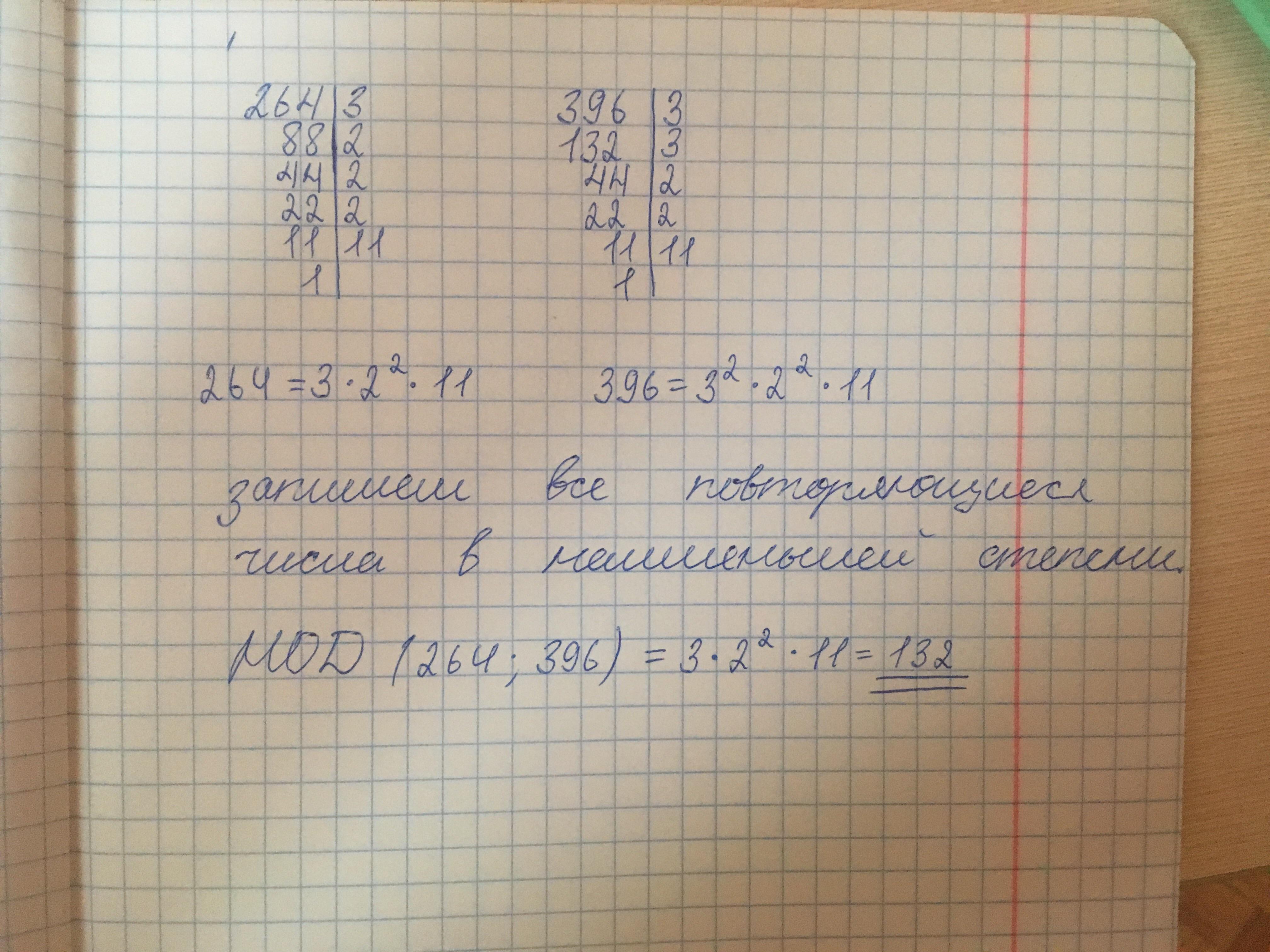 НОД (264; 396) = 132.