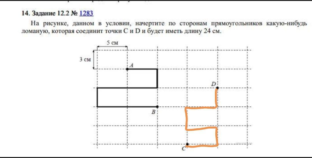 ломаную, которая соединит точки C и D и будет иметь длину 24 см.